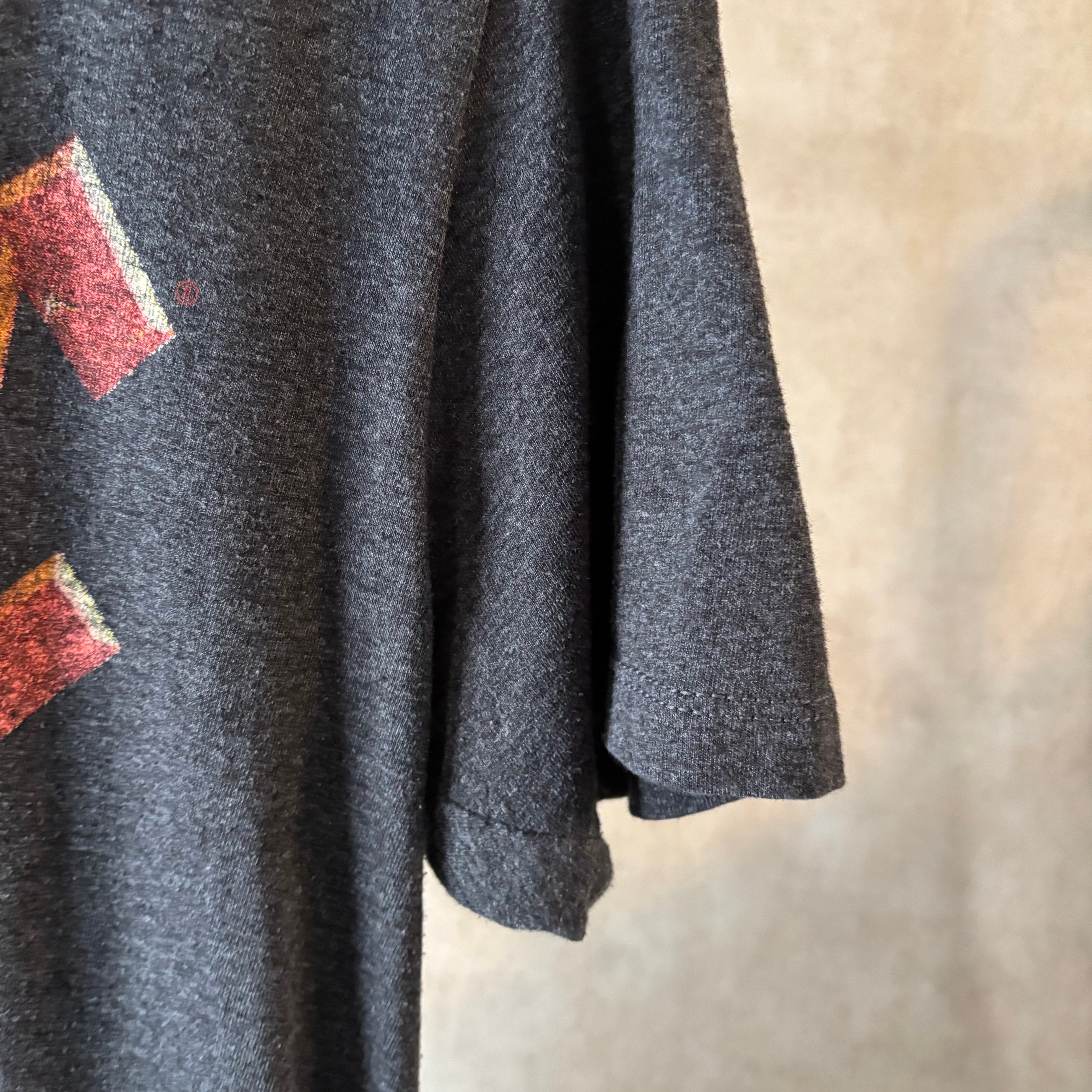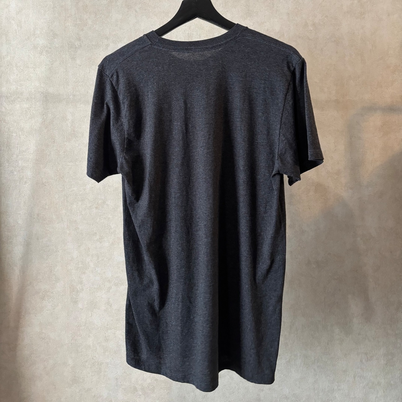 ロゴに砂嵐がかかった様な雰囲気で、強めカラーのロゴの派手さをかなり緩和してくれてて着やすい。