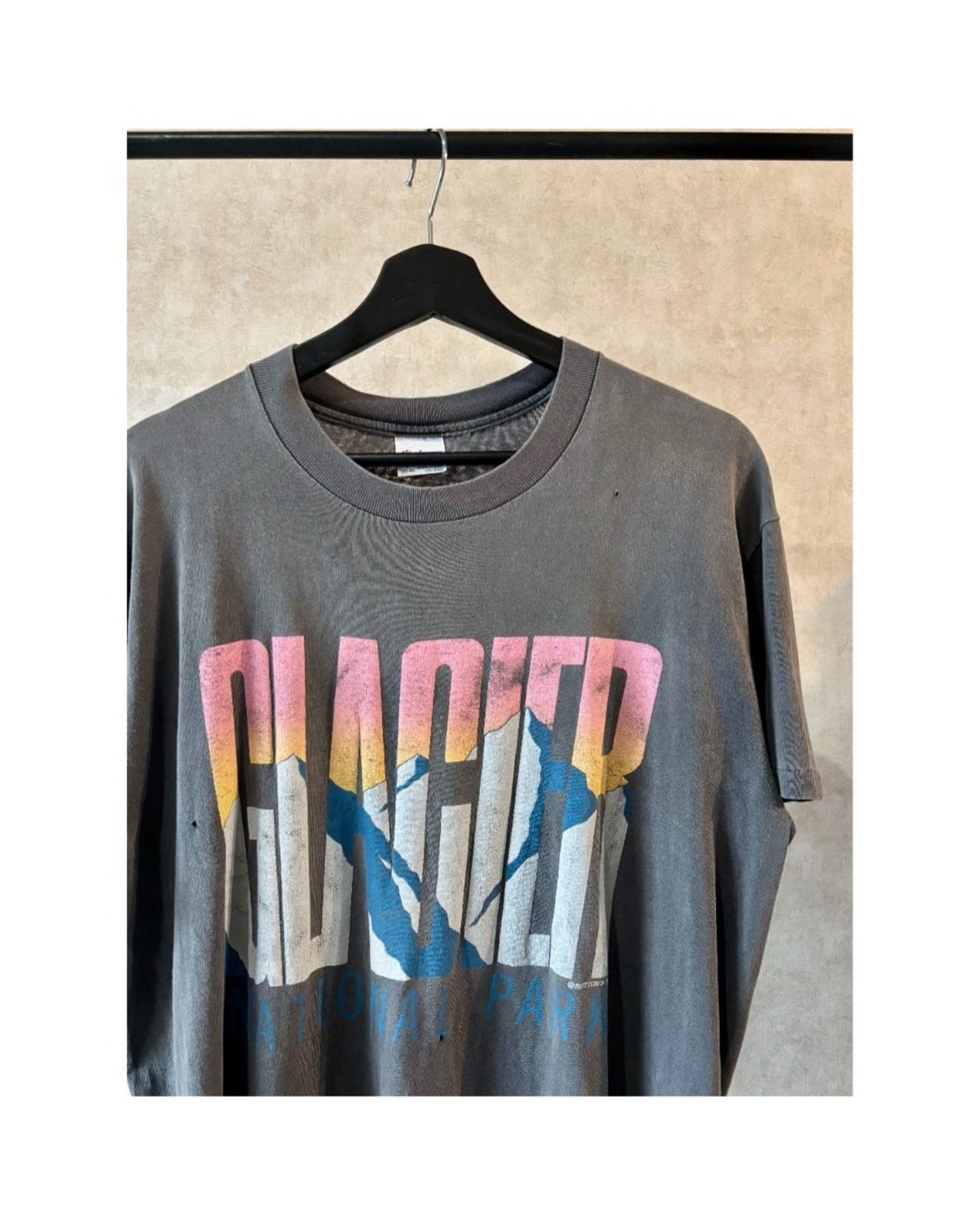 ロッキー山脈の真ん中にある湖の美しいグレイシャー国立公園。特徴的な山をGLACIERの文字の中にデザインしたハイセンスなプリント。