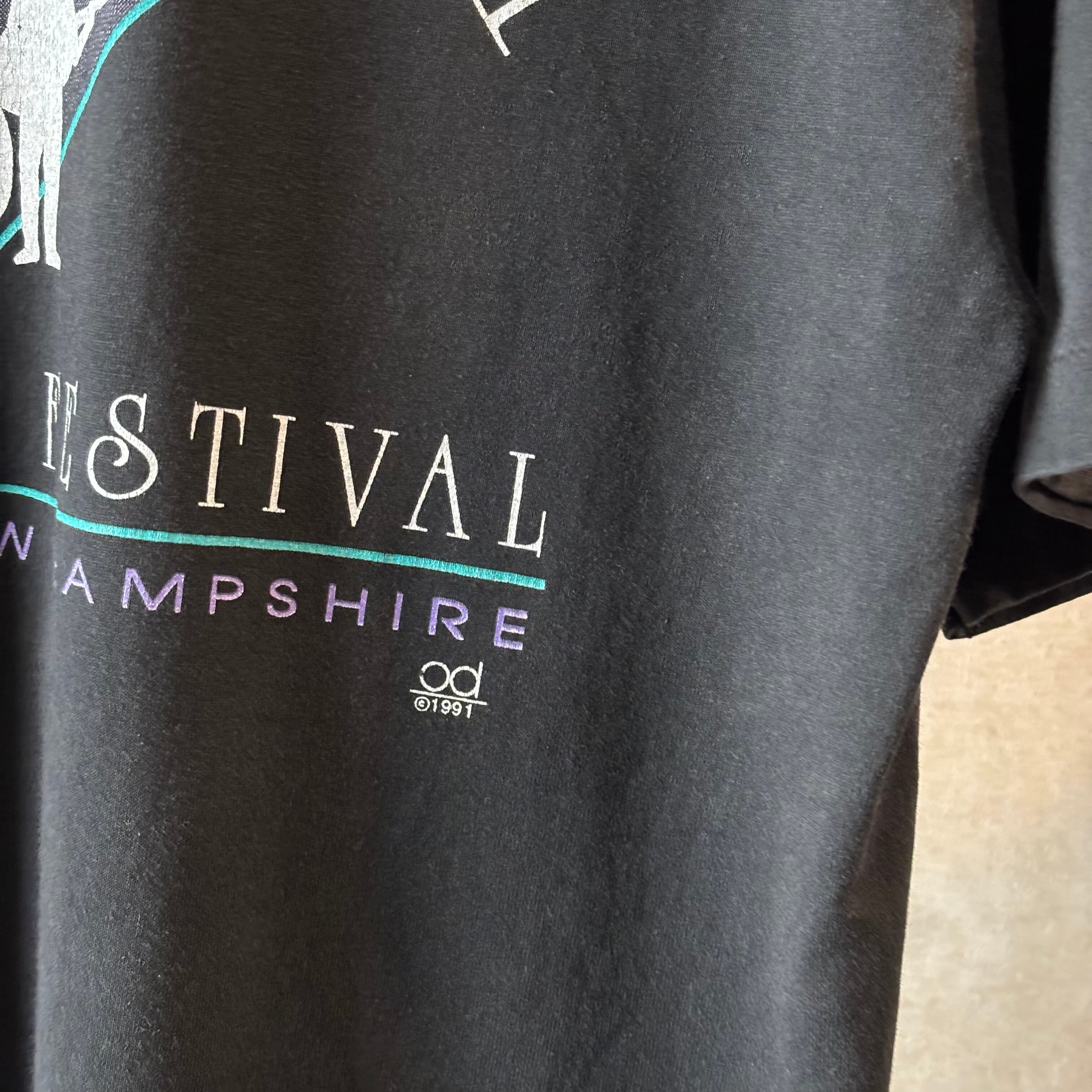 バンジョー、フィドル、マンドリンなどを使ったアメリカのアコースティック音楽「ブルーグラス」を中心とした音楽イベントのTシャツ。